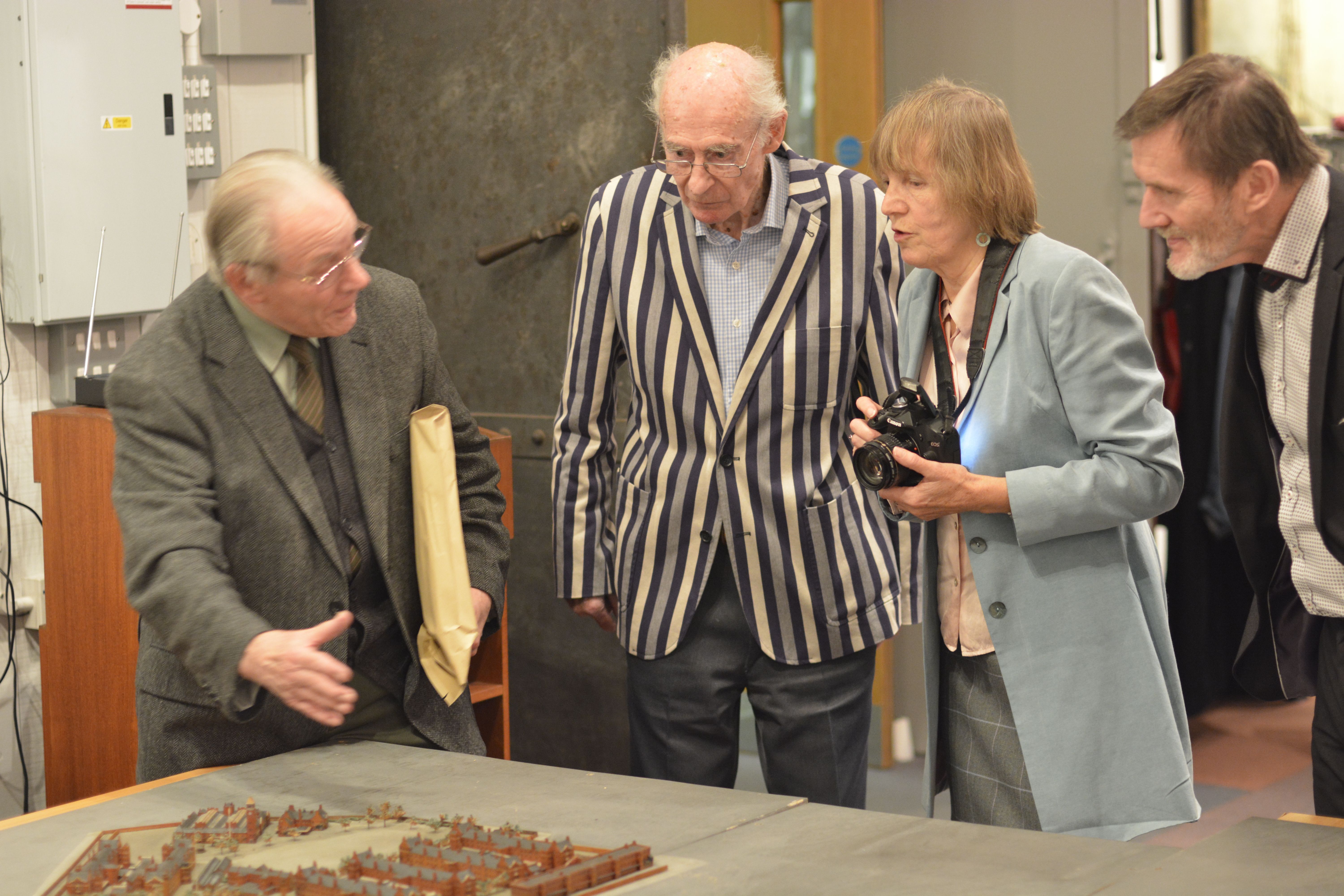 - (l-r) Archie Malley, Portsmouth Royal Dockyard Historical Trust Support Group, Professor Ray Riley, Portsmouth researcher, Dr Ann Coats and Paddy O’Hara discussing the 1938 Portsmouth Dockyard Model