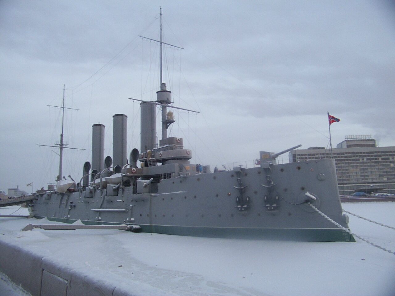 Preserved cruiser Aurora, built 1897–1900, which played a crucial part in the October Revolution 1917. Image by J. D. Davies.